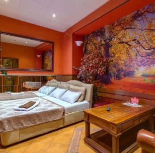 Услуги: спутниковое телевидение, джакузи, веники, караоке, зеркальная кровать
